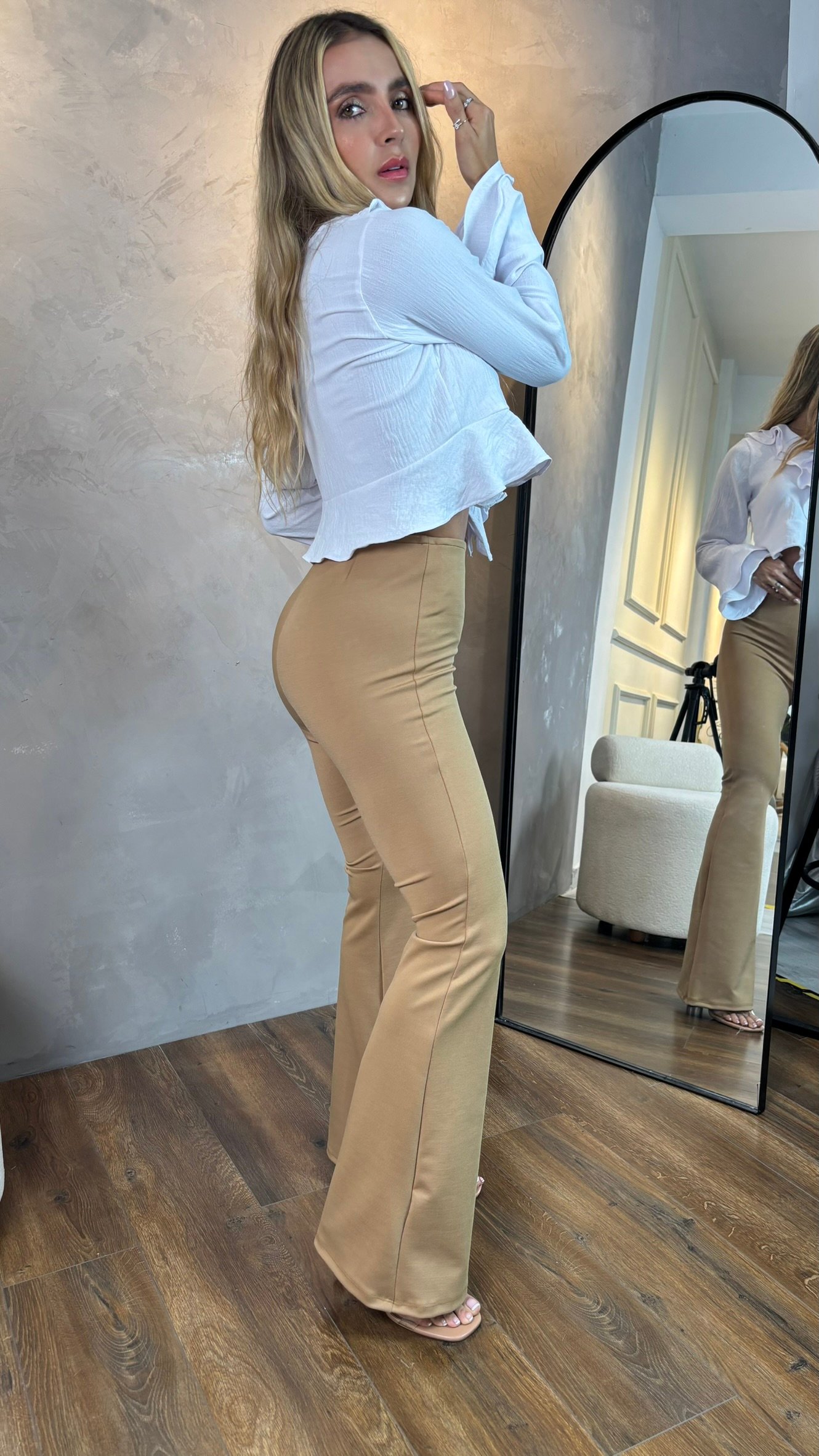 Ligera blusa blanca de estilo boho chic con delicados voleros que capturan la esencia del espíritu libre. Confeccionada en tejido suave que proporciona máxima comodidad, presenta elegantes botones que complementan su diseño sencillo pero sofisticado. Sus voleros estratégicamente ubicados aportan movimiento y feminidad, mientras que su corte holgado garantiza libertad de movimiento durante todo el día. Perfecta para combinar con jeans, faldas largas o shorts, esta blusa versátil elevará cualquier conjunto con su elegancia bohemia atemporal.